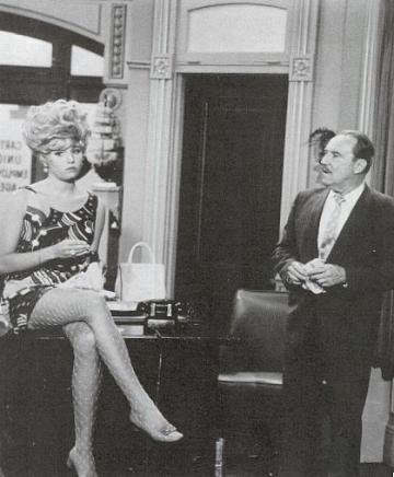 | Harry Carter is horrified by the not-so-efficient secretary Miss 'Shoiley Shopenhower' (Lucie Arnaz). |